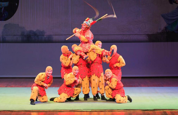 《金猴獻瑞》劇目壓軸登場,展現了孫悟空帶著群猴嬉戲打鬧,展示十八般武藝的場景,美猴王手中兵器的操演令人目不暇接、小猴們的高難度表演精彩紛呈。