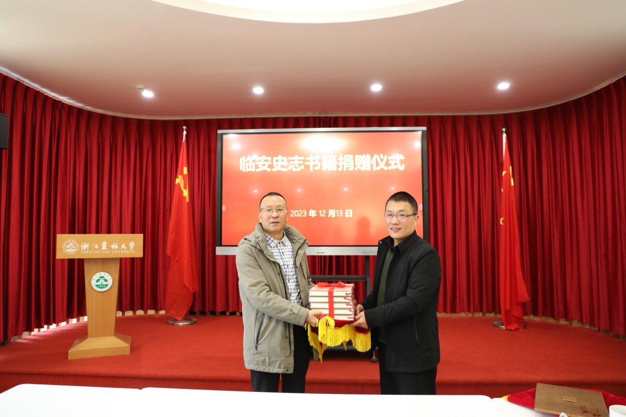 此次捐贈的臨安史志書籍包括《浙江通志?天目山專志》、《臨安紀事》、《天目風俗談》、《大地春潮 改革開放以來臨安黨史專題集》等在內的共37種110冊圖書。豐富了我校地方史志資源的館藏,為全校師生開展學術研究、服務鄉村振興提供了重要文獻資料。未來雙方將進一步深化合作,通過資源互補,人才互動,共同推進臨安地方文化的研究和傳播。