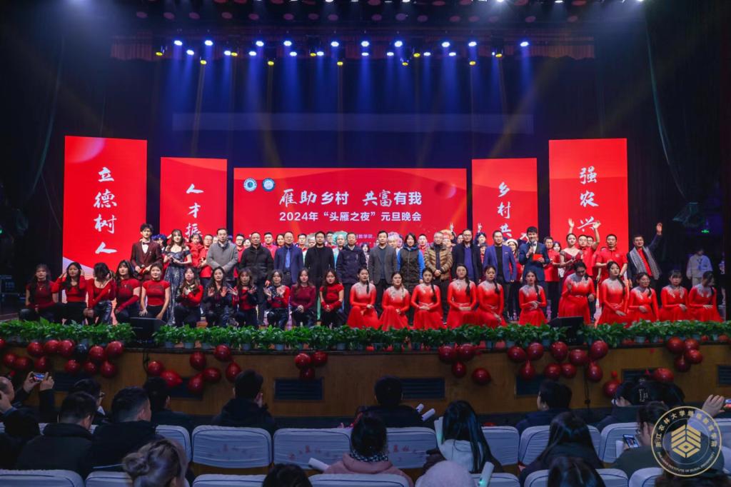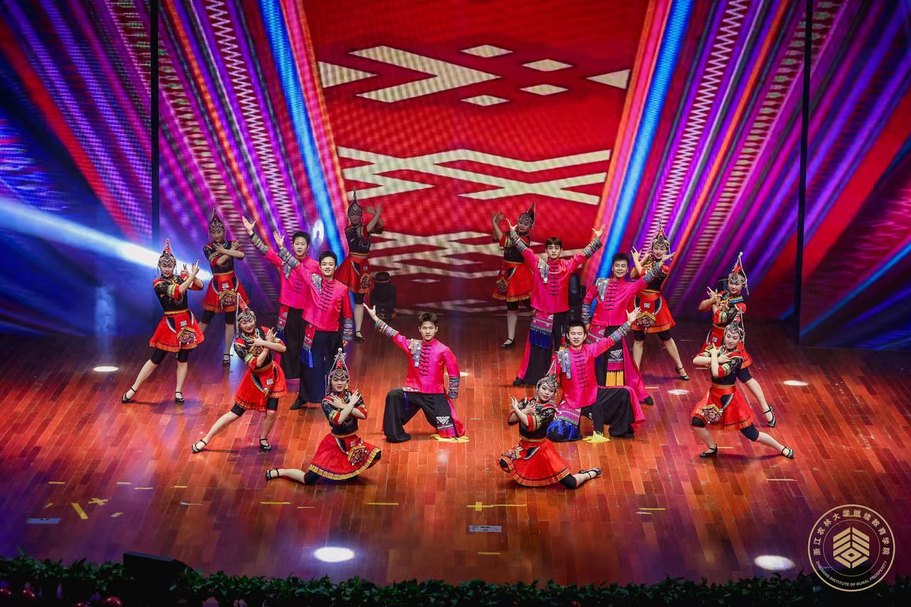 整場晚會分為堅韌不拔、綠水青山、耕讀并進、共創共富四個篇章。歌曲、舞蹈、朗誦、情景劇等12個節目,為廣大師生帶來了一場精彩紛呈的視聽盛宴。歌曲《媽媽的那碗大陳面》讓大家夢回家鄉,回到了童年;舞蹈《美麗畬鄉等你來》帶我們領略了風光旖旎、景秀人寧的美麗畬鄉;走秀《福至》熱烈濃厚,帶著豐收的喜悅,為大家送上了新年祝福;情景劇《頭雁去哪兒了》為大家呈現了頭雁學員們在鄉村振興的筑夢路上戮力同心的場景;朗誦《千載共富夢》展現了學院為了構建美麗鄉村、為了實現共同富裕的偉大夢想不斷努力的畫面。晚會節目精彩紛呈,展現了繼教學子自信昂揚的青春活力,彰顯了鄉村人才特別是“頭雁”學員的創新創業風采。