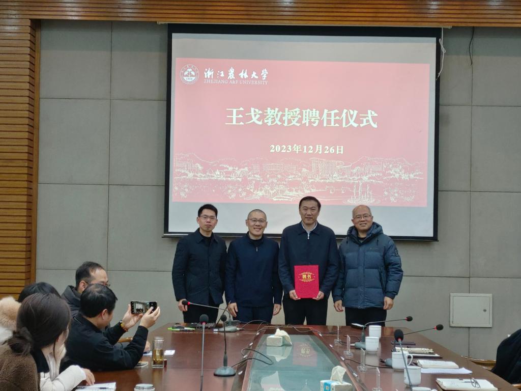 儀式上,竹子研究院常務副院長李延軍介紹了王戈研究員、程海濤研究員的基本情況,孫偉圣向王戈研究員頒發(fā)了聘書,聘任王戈研究員為浙江農林大學兼職教授;竹子研究院為程海濤研究員頒發(fā)了聘書,聘任程海濤研究員為竹子研究院兼職教授。孫偉圣對王戈研究員、程海濤研究員的加盟表示了熱烈歡迎和衷心感謝,將有力提升我校竹產業(yè)隊伍建設水平,對竹研院的一二三產融合發(fā)展提供了強勁支撐。