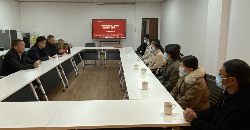 1月11日,浙江省教育工會副主席潘磊代表省總工會、省教育工會來校慰問困難教職工,送上工會“娘家人”的溫暖和新年祝福。省教育工會權益保障工作負責人包顯陪同座談。