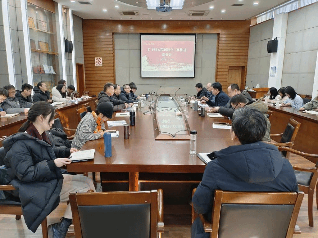 近日,竹子研究院召開國際化工作推進部署會。國教學(xué)院(孔子學(xué)院)院長趙有華、國際處相關(guān)負責人受邀出席,會議由研究院院長宋新章主持,名譽院長方偉、研究院黨政領(lǐng)導(dǎo)班子成員、中加竹子研究院中方院長丁興萃、全體教職員工參加了會議。