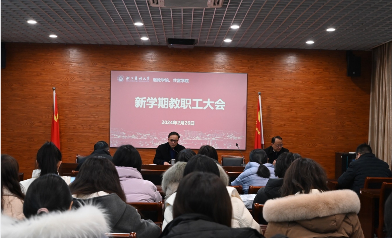 2月26日下午,繼教學院、共富學院召開新學期教職工大會。會議由書記許樹洪主持,黨政班子成員及全體教職工參加。