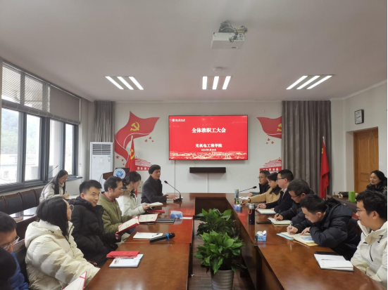 2月29日下午,光機電學院召開新學期全體教職工大會。會議由院長周國泉主持。
