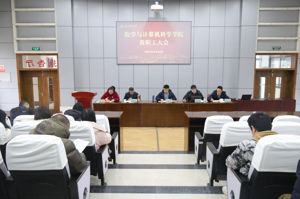 2月29日下午,數(shù)計(jì)學(xué)院召開新學(xué)期教職工大會(huì)。學(xué)院黨政領(lǐng)導(dǎo)班子及全體教職工參加會(huì)議。會(huì)議由黨委書記馮金明主持。