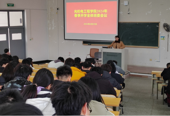 2月29日,光機電學院召開2024年春季學期開學全體班委會議,全院本研各班班委和全體輔導員參加會議。