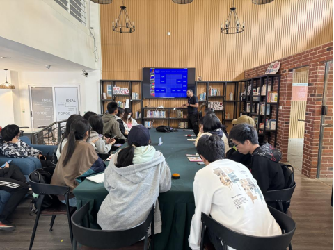 4月11日,集賢學院在學1一樓舉辦“Grammar Gameshow”英語角活動,外教Gene與同學們展開了一場有趣的討論。