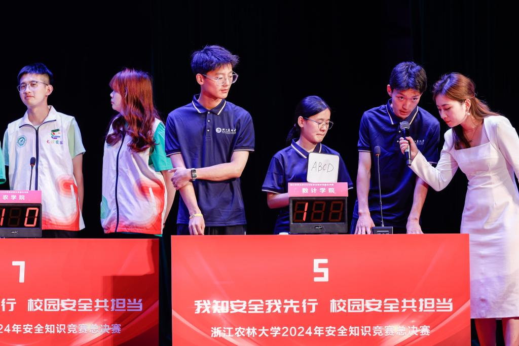 5月10日晚,由學工部、研工部、保衛處、校團委聯合主辦,數計學院承辦的浙江農林大學2024年安全知識競賽總決賽在東湖校區影劇院舉行。校黨委委員,黨委宣傳部部長、黨委教師工作部部長倪建均出席活動,學校主辦部門負責人、二級學院學生工作負責人、輔導員和學生代表500余人參加。數學與計算機科學學院常務副院長馮海林致辭并宣布決賽開始。
