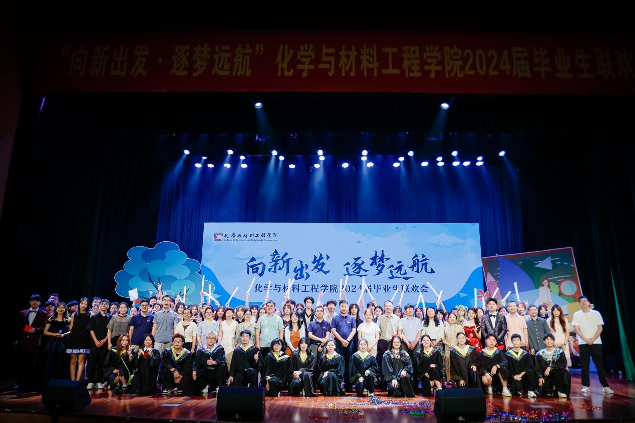 6月16日下午,化學與材料工程學院在活動中心影劇院舉行了2024屆畢業生聯歡會。本次聯歡會以“向新出發,逐夢遠航”為主題,化材學院黨政班子成員、畢業生班主任、導師、在校師生代表、全體輔導員以及兄弟學院團委代表和全體2024屆畢業生共同參加活動。