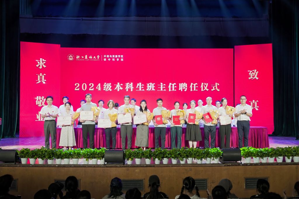 會上,環資院、碳中和學院黨委書記侯錫銘宣讀2024級本科生班主任聘任文件,并為2024級新生班主任頒發聘書。新生代表廖翰峰、在校生代表陳慧瑩、教師代表徐林分別上臺交流發言,對2024級新生即將開啟的大學生活提出了希望和建議,表明了態度和決心。