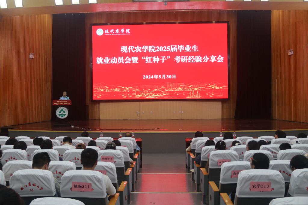 5月30日,農(nóng)學(xué)院在圖書館第一報告廳舉行2025屆畢業(yè)生就業(yè)動員會暨“紅種子”考研經(jīng)驗分享會。學(xué)院相關(guān)領(lǐng)導(dǎo)、學(xué)位點負(fù)責(zé)人、專業(yè)負(fù)責(zé)人,2025屆班主任、輔導(dǎo)員、全體本研畢業(yè)生參加會議。會議分為兩個階段,第一階段主要進行就業(yè)動員和分享,第二階段則聚焦于各專業(yè)考研經(jīng)驗的分享與交流。