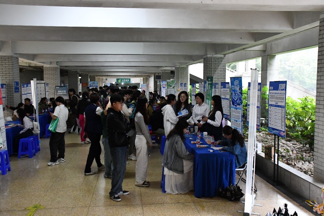 動員大會后,經管學院舉行了專場招聘會,共26家用人單位來校選聘英才。招聘會現場人頭攢動,多家企業舉行宣講,畢業生們積極與企業代表互動交流,圍繞崗位需求、薪資待遇、晉升機制進行深入了解。本場招聘會吸引了寧波港東南物流、平安集團、杭州銀行等眾多知名企業,據了解,部分學生已與企業達成了初步就業意向。