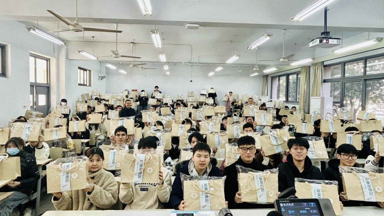 11月28日,化材學院開展了2025屆畢業生考研考公慰問活動。學院黨委書記潘國忠、學院相關負責人、畢業班輔導員為200余名考研考公學子送去“能量加油包”和溫暖祝福。