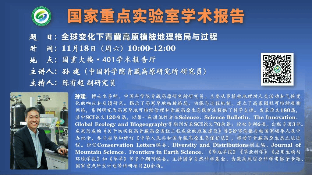 講座預告:全球變化下青藏高原植被地理格局與過程