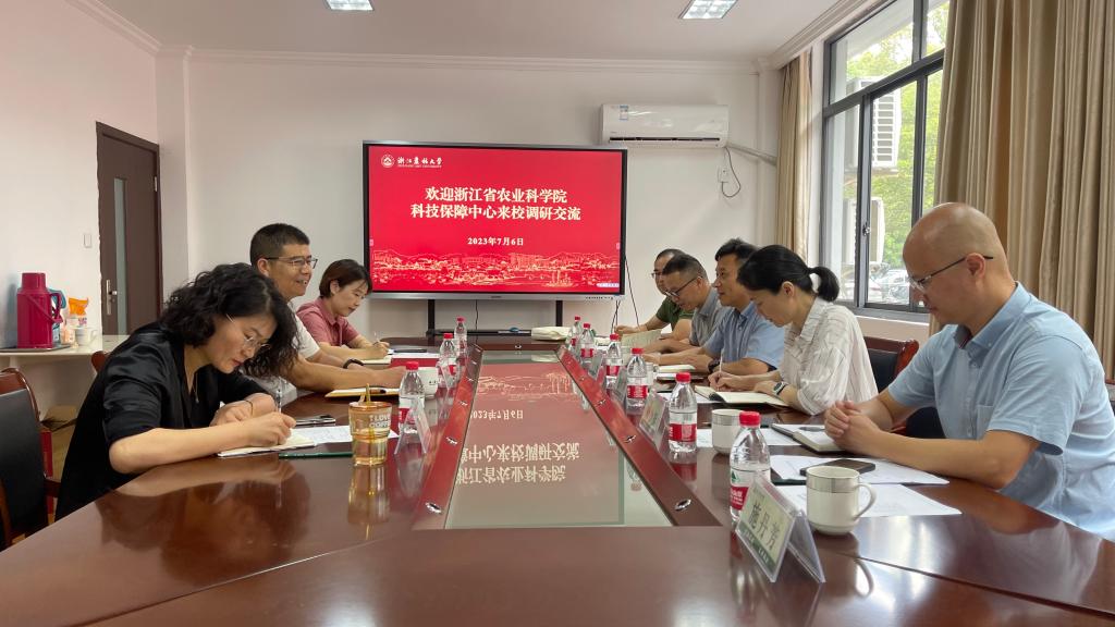 7月6日,浙江省農業科學院科技保障中心黨總支書記、主任金李杰一行來校調研交流。公管處處長陳培金主持座談交流會,公管處、信息中心相關負責人陪同交流。